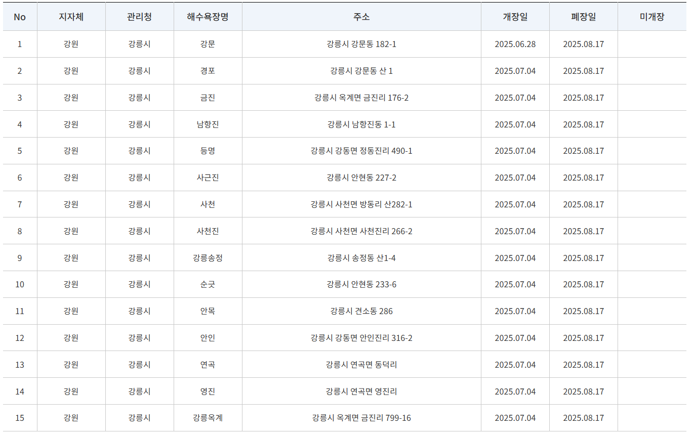 - 2025 해수욕장 개장 시기 한눈에 보기