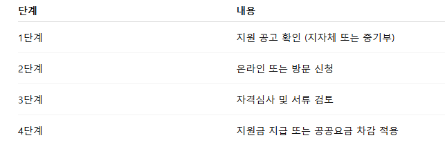 - 공공요금 지원제도: 전기, 가스, 수도 등 경영에 필수적인 공공요금에 대해 정부가 일정 금액을 지원