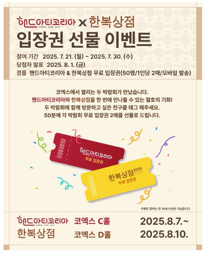 행사 기간 중 다음과 같은 입장 혜택이 주어집니다: