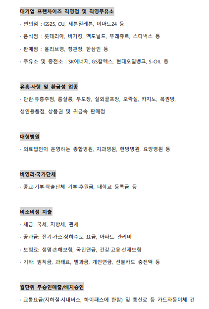 - 제외 : 일반적인 온라인 쇼핑몰, 배달앱 결제