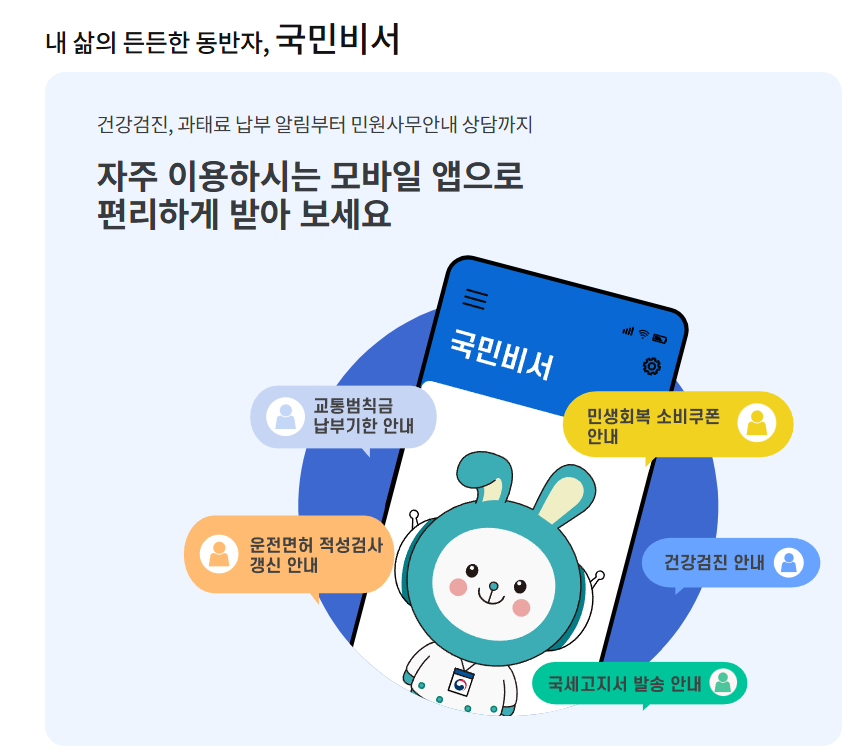 - 카카오톡 알림 OFF → 직접 앱 내 '국민비서' 탭 확인