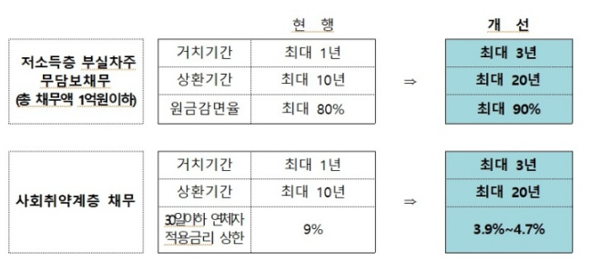 - 원금 감면율 상향: 최대 80% → 최대 90%