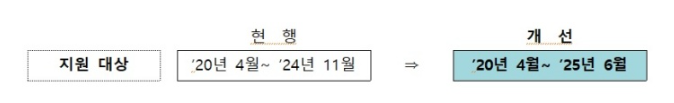 기존에는 2020년 4월 ~ 2024년 11월 사이 창업한 소상공인·자영업자만 지원 대상이었지만, 개선 후에는 2025년 6월까지 창업한 사업자도 지원할 수 있습니다.
