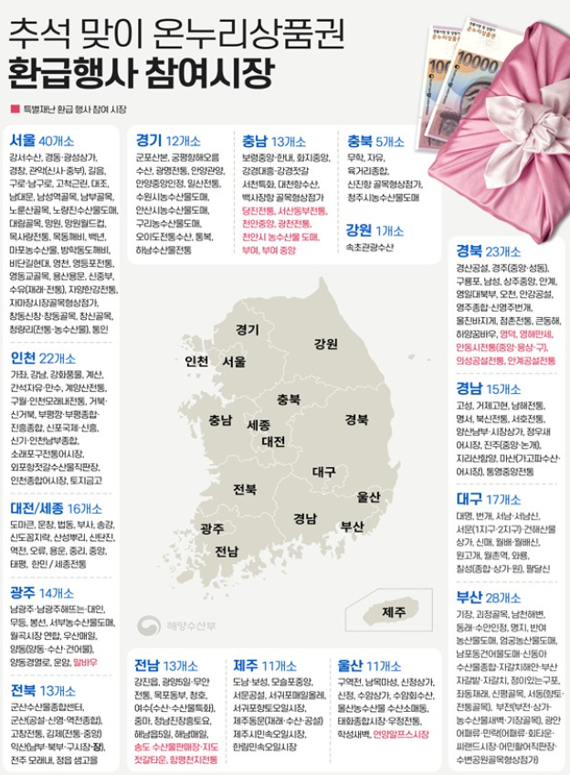 이번 환급행사에 참여하는 254개 전통시장 명단 및 상세 안내는