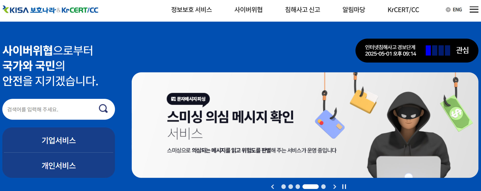 - 스미싱·큐싱 차단 서비스: 보호나라