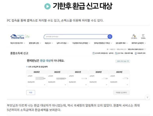 5년치 종합소득세 환급금을 '원클릭'으로 찾는 방법