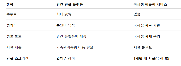 민간 서비스와 국세청 원클릭 서비스 비교