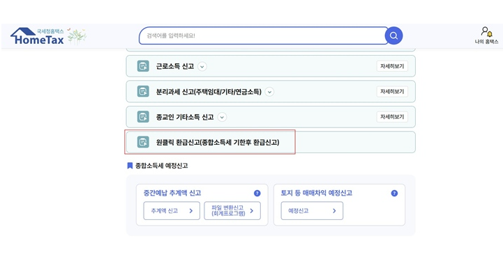 - 홈택스에서 원클릭 환급 신청하는 절차