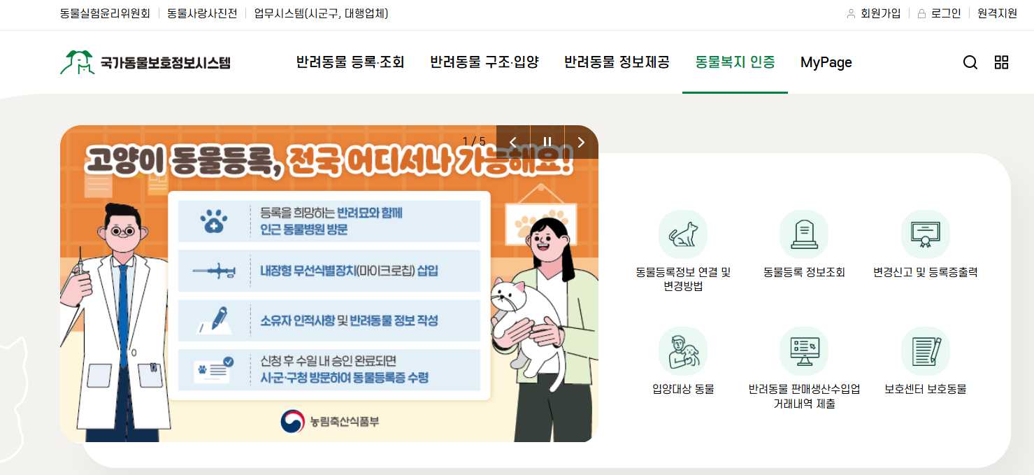 자세한 정보는 '국가동물보호정보시스템' 누리집