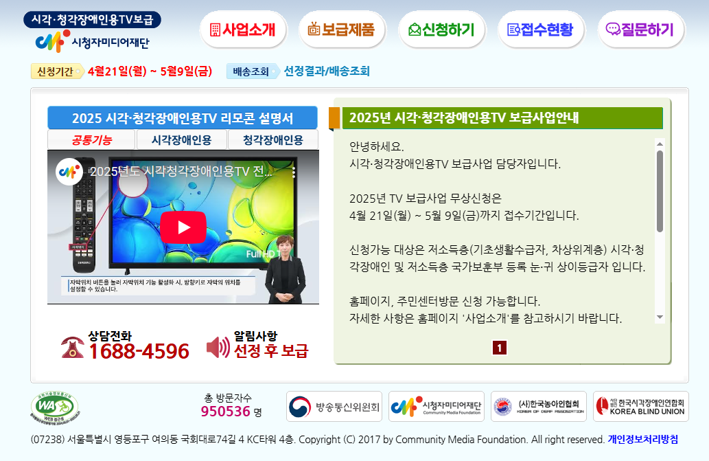 6. 저소득층은 무료, 시각·청각 장애인용TV 신청·접수