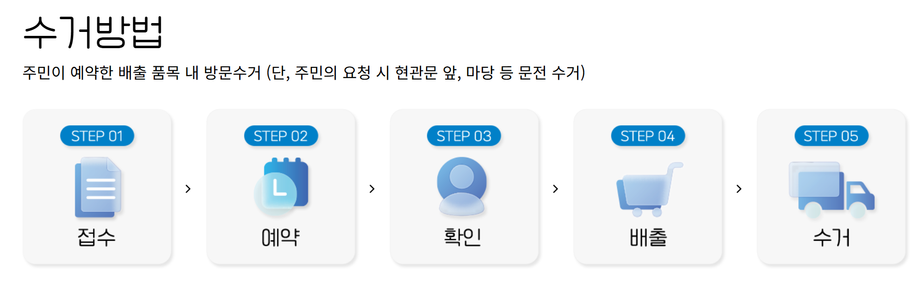 - 직접 방문: 집 앞으로 수거 인력이 방문하여 수거
