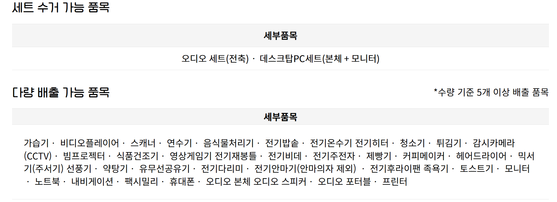 - 무료 수거: 별도의 수수료나 가입 절차 없이 이용 가능