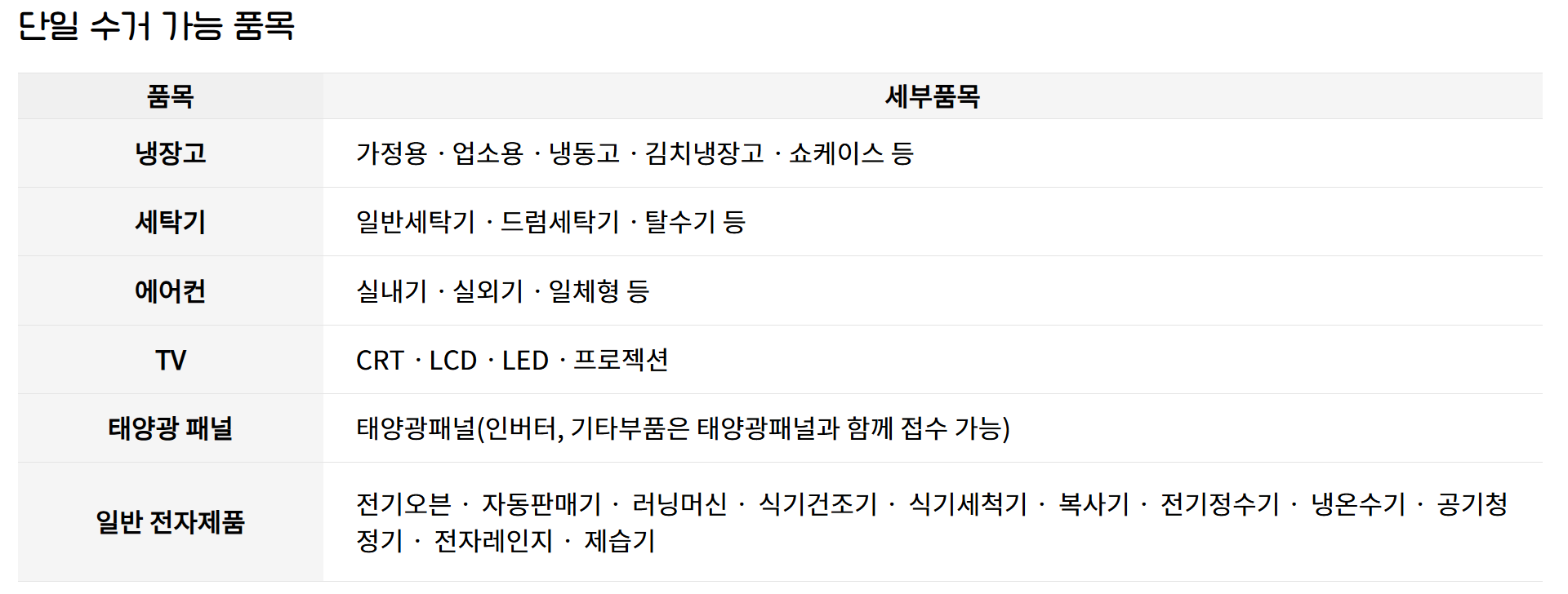 - 환경 친화적 처리: 수거된 가전은 친환경적으로 재활용 처리