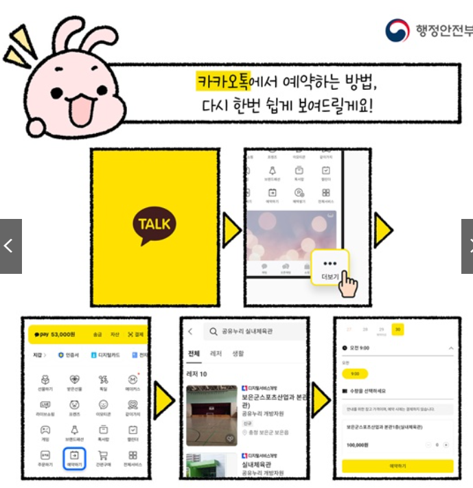 🕒 실시간 예약 현황이 반영되어 중복 예약 걱정 없음4. 카카오톡으로 공유누리 예약하는 법