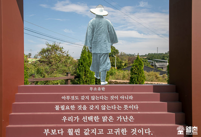 우수영 마을은 현대를 살아가는 우리에게 귀감이 되는 명언들을 남겨 주셨던 법정 스님의 마을도서관이 자리하고 있어요. 도서관에 들어서는 순간 스님의 맑은 향기가 느껴졌어요. 도서관에는 법정 스님의 기록, 집필 도서, 스님의 그림 등을 볼 수 있어요.
