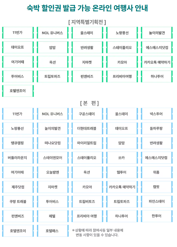 - 미등록 숙박시설은 할인 대상에서 제외됨